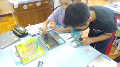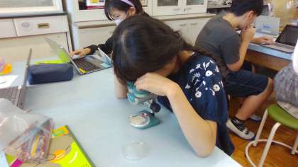 メダカの卵を双眼実体顕微鏡で観察しました。
