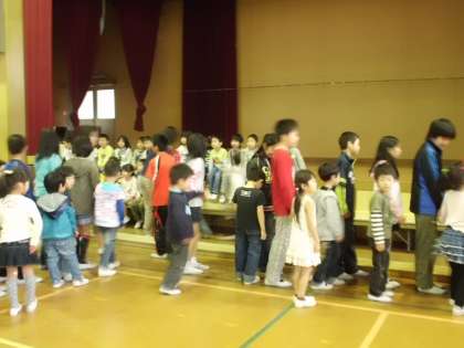 4月の最初に比べると給食やそうじで交流を深めているので1年生と6年生はとても仲良しでした。