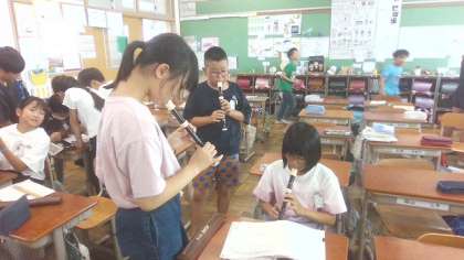 まだまだ暑く、外遊びは難しいですが、リコーダーを吹いたりトランプをしたり絵を描いたり、お喋りをしたり…楽しく過ごしています。