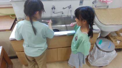 昼休み、それぞれゆっくり歯磨きを