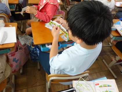 そして、重さを表すのに「グラム」という単位があることを知りました。1円1枚は1グラムです。その後はいろいろな文房具が何グラムぐらいか予想しながら1円玉を使って重さを調べました。