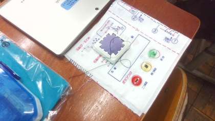 家庭科「ひと針に心をこめて」では、ボタン付けが終わり、この日は、フェルト布を使ってどんなものを作りたいかを考えました。ティッシュケースやマスコット等、思い思いの作品を作る予定です。