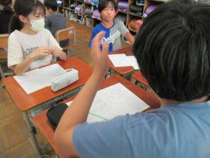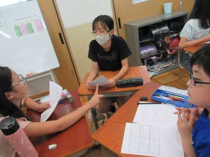 それぞれの授業やスキマ時間などで自分の意見をもって交流する場面を多くつくっています。自分の意見をもって進んで話合う、主体的に学ぶための第一歩です。