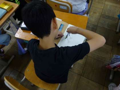 家で使ったことがあった人もいれば、初めて使う人もいました。手首を回す動きはなかなか難しそうです。今日はいろいろなサイズの円を書いてみました。