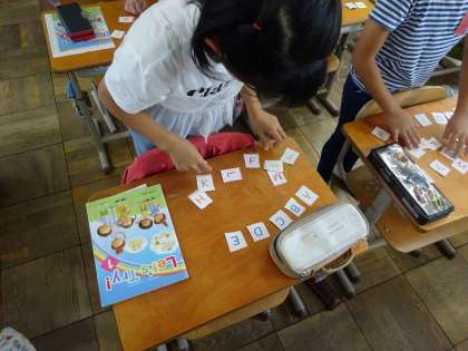 「ABC song」はずいぶんスムーズに歌えるようになってきました。今日はABC…のカードをバラバラに並べ、きれいに並べなおすゲームをしました。ABCの歌を思い出しながら並べていました。