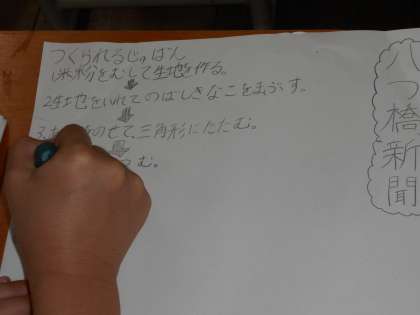 先日、社会科の学習で、おたべ工場と京ばぁむの工場見学に行き、たくさんの秘密を知ることができました。そんなたくさんの秘密をノートにメモした後、オリジナル新聞をつくることにしました。どんな新聞に仕上がるでしょうか。完成が今からとても楽しみです。