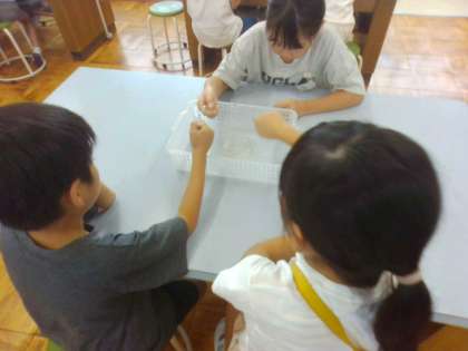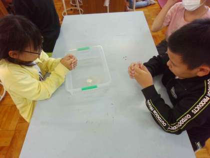 試験管を握り、温度の上昇に合わせて起こる空気の変化に興味津々でした。