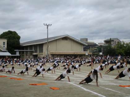組体操の1人技。音楽に合わせてカウントを取り、難しい技にもたくさんチャレンジ。立ち姿も演技の一つ。集中してよい雰囲気が作れるようになりました。終盤には、それぞれが見せたい技を自由に選び16カウントの構成も考えました。