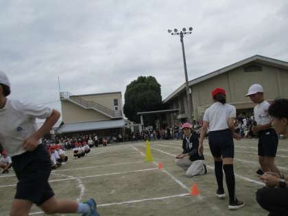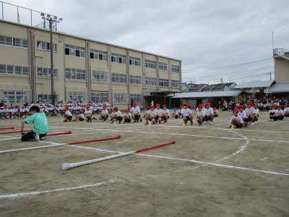 運動会では、棒引きをしました。挨拶やルール説明、結果発表等全て自分たちで運営しました。団体競技を通して、友だちと協力することや自分たちで競技を運営する楽しさについて学びを深めた子どもたちです。敵味方関係なく楽しく試合をすることができました。