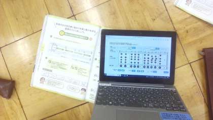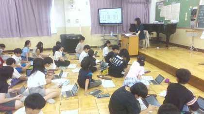タブレット端末を使って音楽づくりをしました。友だちと作った音楽を聴き合い、歓声をあげていました。