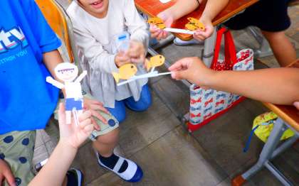 図画工作科で『パタパタストロー』の学習をしました。ストローで動く仕組みから、思いついたものを作りました。子どもたちは、作ったものを動かしながら、友達と楽しく遊んでいました。