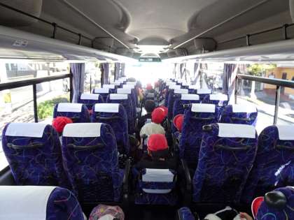 バスの中でも楽しそうな声が聞こえていました。