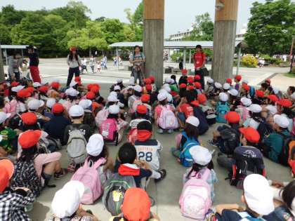 今日は延期になっていた春の遠足に行きました。子どもたちも待ちに待っていた遠足。張り切って先生のお話を聞いたり,2年生について歩く姿がとても素敵でした。