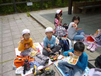 広場でお弁当を食べました。