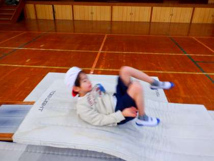 体育科で『とびばこあそび』の学習をしています。この日は、とびばこの上にマットをしいて、「前回り」をしました。高さがあるところでも前回りをすることができるようになり、楽しみながら活動をしている姿が見られました。