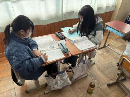 一人で黙々と取り組む子、友だちに教えてもらいながら取り組む子。