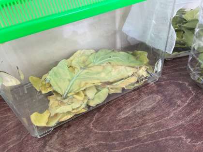 理科の「チョウを育てよう」の学習に関連して、学年のフロアでモンシロチョウやアゲハチョウを育てています。