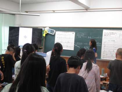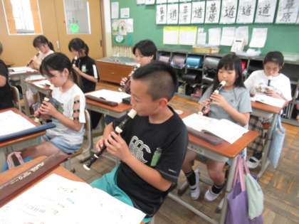 「いつでもあの海は」「小さな約束」の楽曲を、歌唱・リコーダーで演奏する練習をしました。音の重なりを意識しながら、きれいな声で歌ったり、リコーダーで演奏したりすることに挑戦しました。