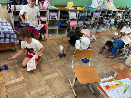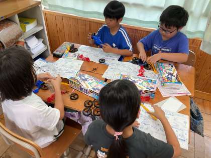 理科の学習で使う「風とゴムで動く車」を製作しました。説明書とにらめっこしながら、そして時々、友だちと仲良く教え合いながら一生懸命に作る姿が素晴らしいです。