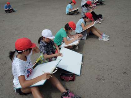 子ども達は,自分でデッサンしたい場所を決めて,一生懸命に描いていました。