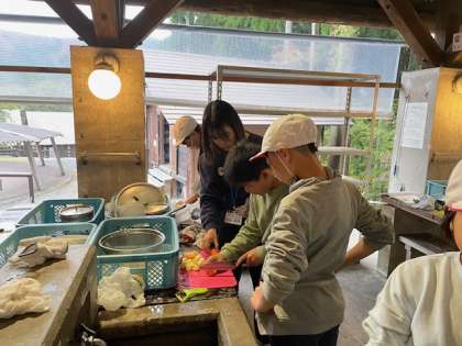 材料を切ったり、かまどに火をつけたり、苦労したところもありましたが、みんなで頑張りました。