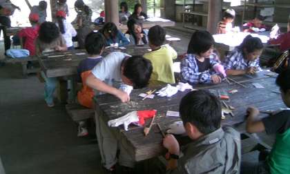 山の家にいる間,食事で使うことになる竹ばしを作りました。