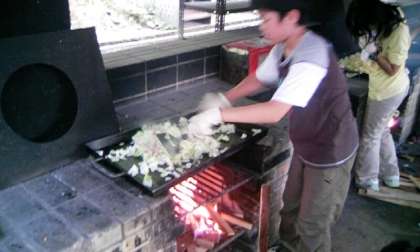 みんなでつくった「焼きそば」は,最高です。空気もうまいし,焼きそばもうまい。食欲が進みます。