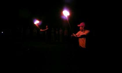 そして,ボンファイヤー。薪への点火です。たき火を囲んで,今夜はみんなで語り合います。