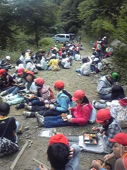 待ちに待ったお弁当です。がんばって一緒に登った仲間たちと食べるお弁当の味は,最高です。