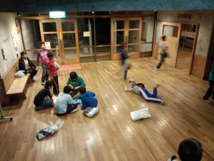 お風呂の時間が近づいてきました。でも,学校ごとに決められた時刻にならないと入れません。子どもたちは待ちきれずにホールにぞろぞろと集まってきます。早くあたたかいお風呂にはいりたいな。はいったらゆっくり湯船につかり,今日の疲れをとってほっこり。明日はいよいよ雲取山に登ります。