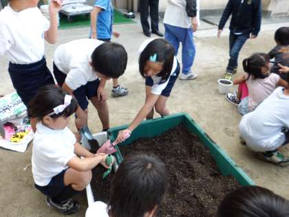 2年生の花壇で,人権の花「水仙」を育てることになりました!