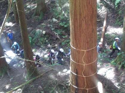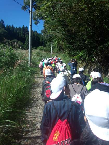みんな元気に山に登っています。いくつかある関門もなんとか全員クリアー。険しいところもありますが,みんなで励ましあって登っています。