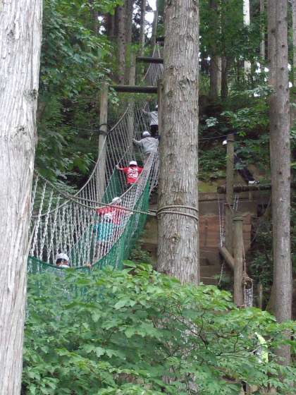 きょう1日降ったりやんだりのお天気でしたが,お昼過ぎからお日さまがでてきて,なんとかアスレチックの活動を楽しむことができました。