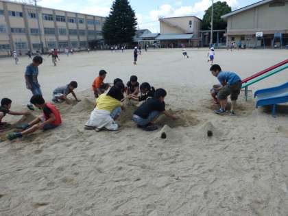 4年生の外遊びの中で砂場遊びがブームのようです。