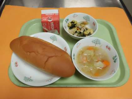 今日は野菜のスープ煮に銀杏型の「しあわせにんじん」が入りました。