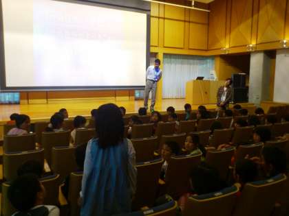 大ホールの大きなプロジェクターで,映像を映してもらいながら説明をしていただきました。