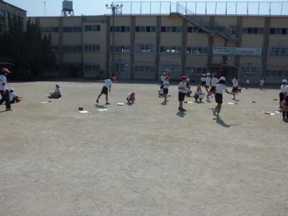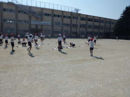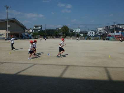 5分間走は、初めの1周でがんばりすぎてあとはばててしまう子が