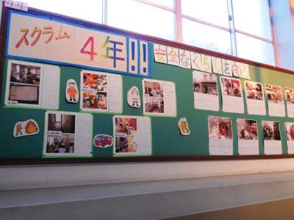 東校舎2階から3階へのおどり場に,4年生の掲示板があります。