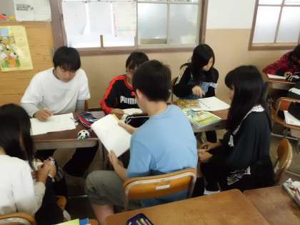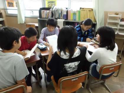 調べ学習をした後は,班の人たちと自分が調べてことを交流しました。