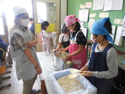 配る時も,低学年用・中学年用・高学年用と,量を考えて入れてくれます。頼もしいですね。