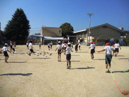 4年生は今,体育の授業で「5分間走」と「なわとび」をしています。