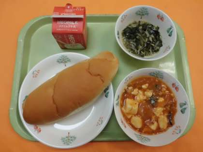 今日は生姜、豆板醤で味付けしたケチャップ煮にナムルという中華の献立です。
