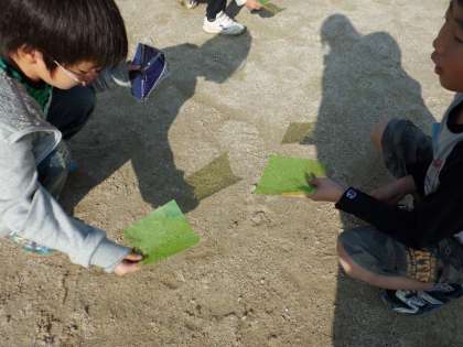 今回の図工は,段ボールにいろいろな形の穴をあけ,
