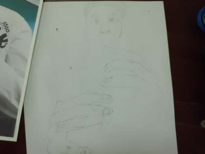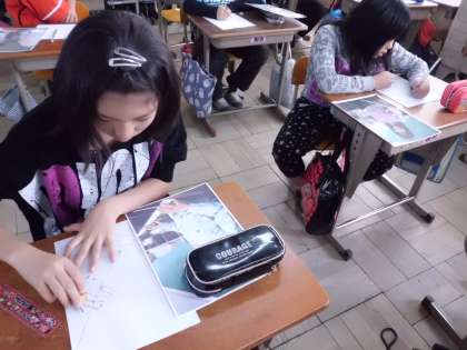 じっと写真を見つめ,黙々と下書きを描いていきます。