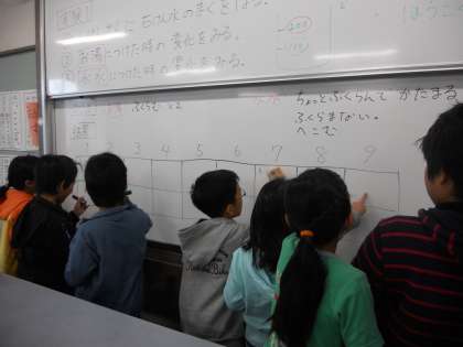 実験の結果は,班ごとに当番にあたった人が報告しています。
