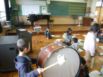 バスマスター(低音の楽器)の音に子どもたちはびっくりしていました。