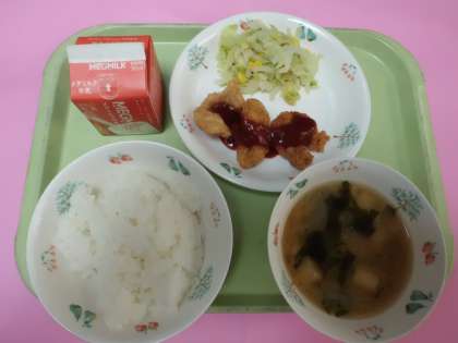 今日は給食感謝のメニューです。年1回のヒレカツはカツの衣つけからソースまで全て手作りで、子供たちは大喜びでした。毎日おいしく食事ができる喜びと食べ物や働く人々に感謝しながらの給食となりました。