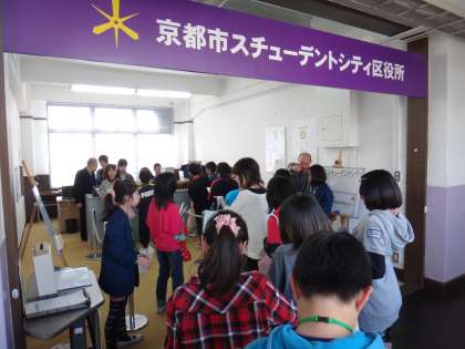はじめは、区役所で、住民登録をしなければならないので、市役所のブースの子どもたちは、登録する手続きをしなければならなかったので忙しかったと思います。