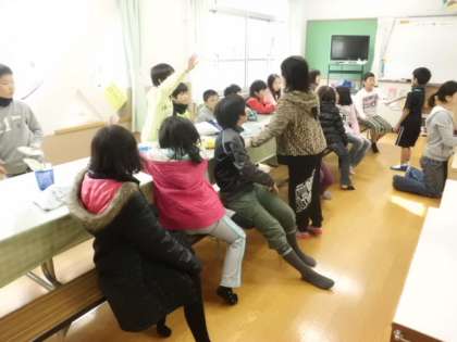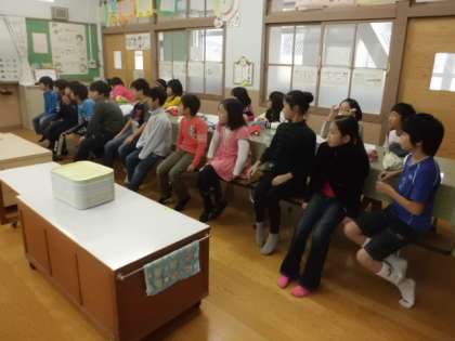 栄養教諭の先生と一緒に、「かむ」ことの大切さについての体験学習をしました。