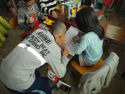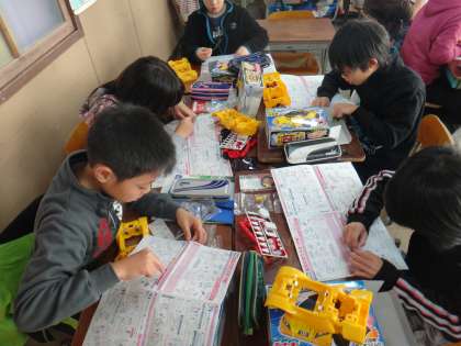 子どもたちは、真剣に作っていました。友達としっかり話し合いながら組み立てていました。